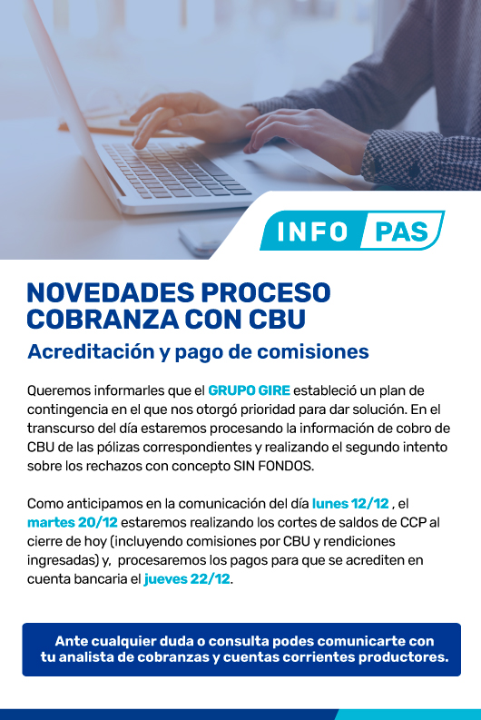 ℹ️ Novedades proceso de cobranzas con CBU