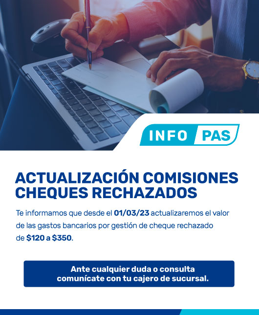 Actualización comisiones cheques rechazados